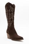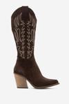 DERİCLUB Kadın Yüksek Topuk Western Çizme Gerçek Süet Deri ZY 1614 SÜET KAHVE