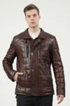 **Regular kalıba sahip olan Erkek deri mont modeli, gizli fermuar ve çıt-çıt kapama detayına sahiptir. Gömlek yaka tasarlanan modelin en çok dikkat çeken özelliği ise modern teknikler ile işlenmiş dikiş detaylarıdır. Göğüs kısmında bulunan dik fermuar ve yan ceplerde bulunan ince dikiş detayları da modele ayrı bir hava katmaktadır.