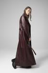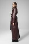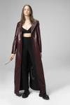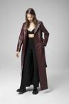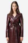 WM030 Hakiki Deri Kadın Uzun Trençkot BORDO