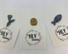 - El yapımı üçlü seramik charm seti; balina kuyruğu, deniz kabuğu ve balık figürlerinden oluşur.