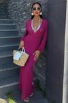 V yaka detayı ile feminen çizgiler ön plana çıkarılırken boynunuza zarif bir dokunuş eklenir.