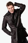 Deriza Kagawa Erkek Siyah Deri Trençkot