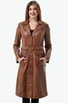 Deriza Brenda Hakiki Deri Kadın Pardesü Siyah