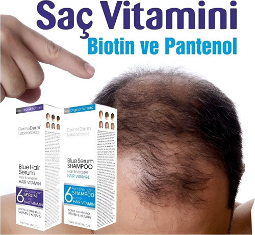 Dermaderm Saç Güçlendirici Mavi Serum, vitaminler ve mineraller kullanılarak üretilmiştir