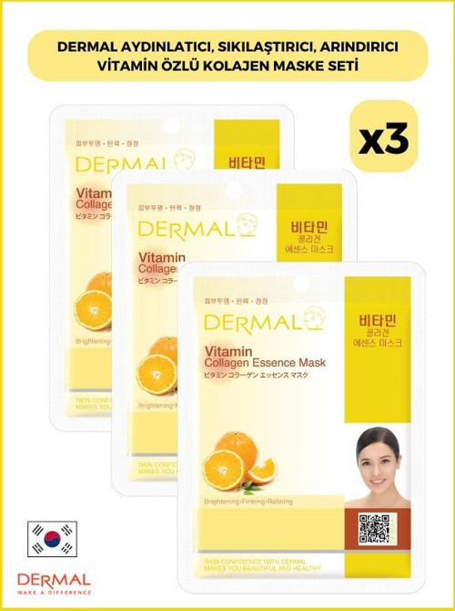 Dermal Aydınlatıcı, Sıkılaştırıcı, Arındırıcı Vitamin Özlü Kolajen Maske 23gr 3 Adet