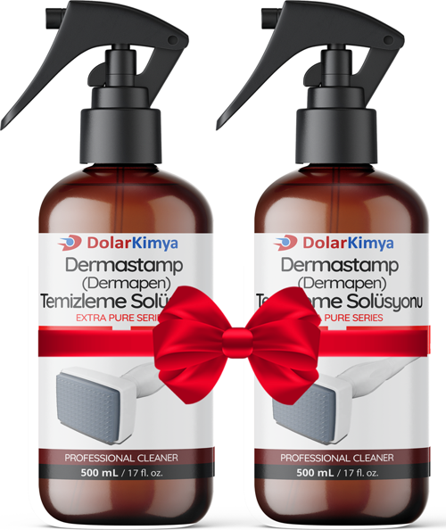 - Küçük bir kaba veya bardağa, iğneli başlığı tamamen kaplayacak kadar Dolar Kimya Dermastamp (Dermapen) Temizleyici Solüsyonu dökün.