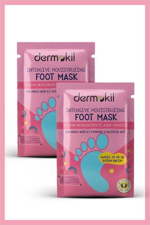 ÜRÜN KULLANIMI Ayaklarınızı yıkayın ve iyice kurutun, Dermokil Nemlendirici Ayak Maskesini ambalajından çıkarın, çizgili kısımdan ikiye ayırın, sol ve sağ ayağınıza giyin. Maske tamamen emilene kadar masaj yapın, tekrar kullanmayın.