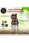 Ürün Ölçüleri: Yükseklik (baca harıç): 38cm En: 24,5cm Boy: 24,5cm Su Haznesi: 4,5 LT Demlik Haznesi: 1,1 LT Ağırlık:2 kg Renk: Üst Gövde: Bakır Görünümlü Dış Kısmı Boyalı Alüminyum Alt Gövde: Krom Kaplama Sac