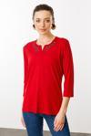 Desen Triko Kadın Açma Yaka Nakış İşlemeli Penye Bluz 25701 Kırmızı