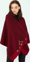 Kadın Çiçek İşlemeli Triko Şal 23154 Vişne Çürüğü
