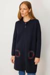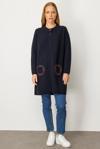 Detay: Düz renk tasarımıyla sade ve güçlü bir duruş sergileyen bu dik yaka triko kaban, geniş kalıbıyla rahat ve salaş bir siluet sunar. Uzun kollu yapısı ve yünlü dokusu sayesinde soğuk havalarda üstün sıcaklık sağlar. Modern çizgileriyle hem şehir stiline hem de hafta sonu kombinlerine şıklık katar;