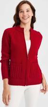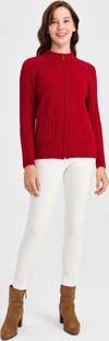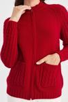 Detay: Dik yaka, uzun kollu, düz renk hırka;