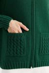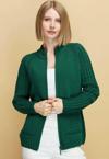 Detay: Dik yaka, uzun kollu, düz renk hırka;