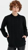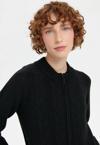 Desen Triko Kadın Dik Yaka Dikişsiz Önü Saç Örgülü Yün Hırka 24268 Siyah