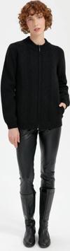Kadın Dik Yaka Dikişsiz Önü Saç Örgülü Yün Hırka 24268 Siyah