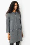 Detay: Düz renk tasarımıyla sade ve güçlü bir duruş sergileyen bu dik yaka triko kaban, geniş kalıbıyla rahat ve salaş bir siluet sunar. Uzun kollu yapısı ve yünlü dokusu sayesinde soğuk havalarda üstün sıcaklık sağlar. Modern çizgileriyle hem şehir stiline hem de hafta sonu kombinlerine şıklık katar;