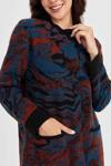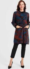 Detay: Dik yaka, uzun kollu, desenli kaban;