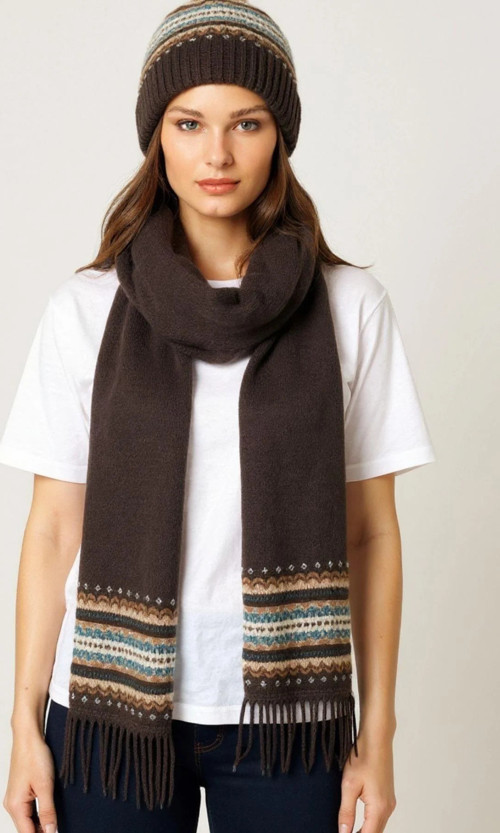 Desen Triko Kadın Jakarlı Yün Bere 25074 Kahverengi
