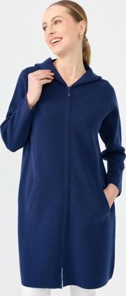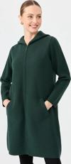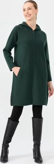 Desen Triko Kadın Kapüşonlu Fermuarlı Basic Uzun Yün Kaban 24044 Yeşil