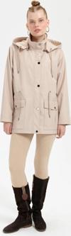 Kadın Kapüşonlu Kapaklı Cepli Kısa Trençkot 24416 Bej