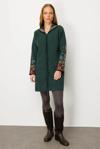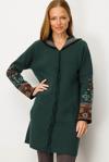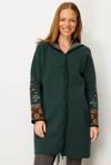 Kadın Kapüşonlu Kilim Jakarlı Püsküllü Yün Kaban 25056 Yeşil