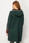 Desen Triko Kadın Kapüşonlu Kilim Jakarlı Püsküllü Yün Kaban 25056 Yeşil
