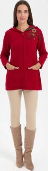 Detay: Düz renk, uzun kollu, kapüşonlu hırka;