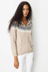 Desen Triko Kadın Kapüşonlu Robası Baklavalı Hırka 25230 K. Bej