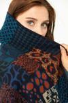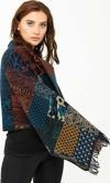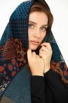 Desen Triko Kadın Kırk Yama Desenli Saf Yün Şal 02421143 Lacivert
