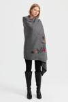 Desen Triko Kadın Köşeleri Nakış İşlemeli Şal 23022 Gri Melanj