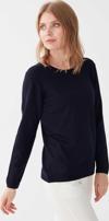 Detay: Uzun kollu, sıfır yaka bluz;
