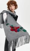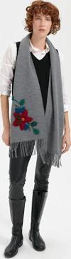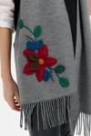 Desen Triko Kadın Örgü Çiçek İşlemeli Püsküllü Kaşkol 24072 Füme
