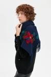 Kadın Örgü Çiçek İşlemeli Püsküllü Kaşkol 24072 Lacivert