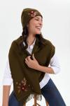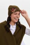 Kadın Papatya Çiçek İşlemeli Yün Bere 24026 A. Yeşil