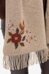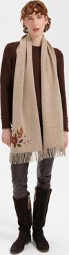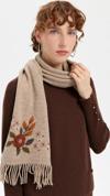 Kadın Papatya İşlemeli Püsküllü Yün Kaşkol 24027 K. Bej