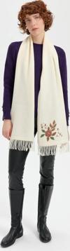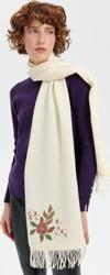 Kadın Papatya İşlemeli Püsküllü Yün Kaşkol 24027 Kemik