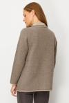 Trist Star Kadın Olive Oversize Bisiklet Yaka Düğmeli Saç Örgülü Yün Karışımlı Triko Örme Hırka Trıst-6166 - Image 1