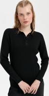 Detay: Uzun kollu, polo yaka, düz renk kazak;