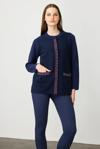 Desen Triko Kadın Sıfır Yaka Önü Keçe Kısa Yün Ceket 25018 Y.A. Lacivert