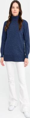 Desen Triko Kadın Tam Balıkçı Yaka Dikişsiz Kazak 23391 Lacivert