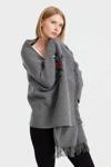 Detay: Düz renk, pirinç örgü işlemeli şal;