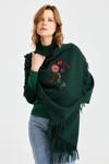 Kadın Triko Pirinç Örgü İşlemeli Yün Şal 23030 Yeşil