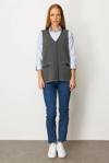 Detay: Düz renk tasarımıyla sade ve zarif bir görünüm sunan bu V yaka yelek, standart kalıbı ve kolsuz yapısıyla konforlu bir stil deneyimi sağlar. Yünlü dokusu sayesinde hem sıcak tutar hem de kaliteli bir duruş sergiler. Günlük kombinlerden klasik giyim tercihlerine kadar her tarza uyum sağlayan ideal bir parçadır;