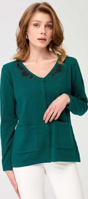 Detay: V yaka, uzun kollu, düz renk hırka;