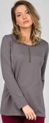 Detay: Bisiklet Yaka, Uzun Kollu, Yakası Nakış İşlemeli Kazak;