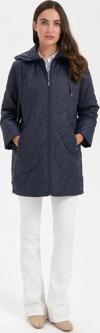 Kadın Yanları Çıtçıtlı Yaprak Desenli Kapüşonlu Araboy Kapitone Kaban 24419 Lacivert