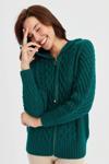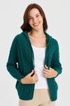 Desen Triko Kapüşonlu Saç Yürütme Örgülü Kadın Yün Hırka 23198