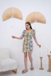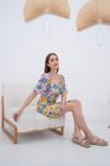 Desenli Boyundan Bağlamalı Desenli Elbise