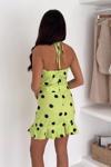 Yeşil rengi ile dikkat çeken bu elbise, kadınlar için özel olarak tasarlanmıştır.