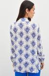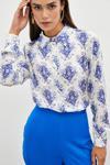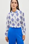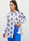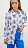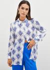 Ön gizli pat, uzun kol, kalça altı boy, desenli düz gömlek.